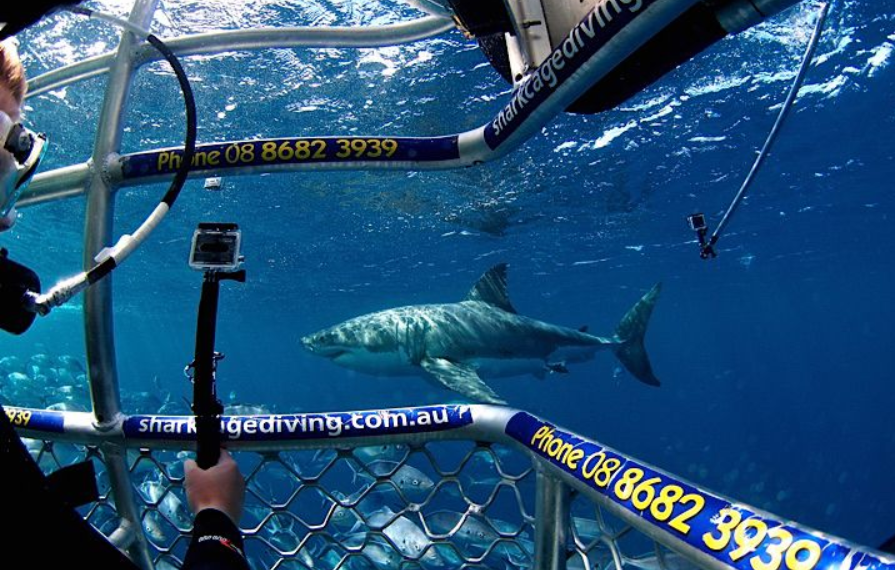 Cómo es bucear en una jaula con tiburones blancos